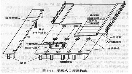 ②防水混凝土铺装。 为使铺装层具有足够的强度和良好的整体性(亦能起联系各主梁共同受力的作用),一般宜在混凝土中铺设直径为4~6mm的钢筋网。