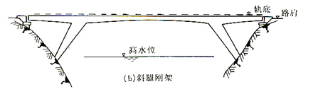 (2)拱式桥。拱式桥在竖向荷载作用下,两拱脚处不仅产生竖向反力,还产生水平反力(推力)。 因此拱式桥对地基要求很高,适建于地质和地基条件良好的桥址。