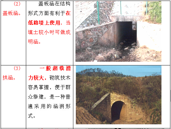 1.按构造形式不同分类 涵洞可分为圆管涵、拱涵、盖板涵、箱涵等。