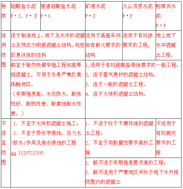 (1)水泥强度等级较高,主要用于重要结构的高强度混凝土、钢筋混凝土和预应力混凝土工程。
