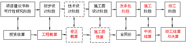 (6)工程结算。是指在工程施工过程和工程竣工验收阶段,按合同调价范围和调价方法,对实际发生的工程量增减、设备和材料价差等进行调整后计算和确定的价格,反映的是工程项目实际造价。
