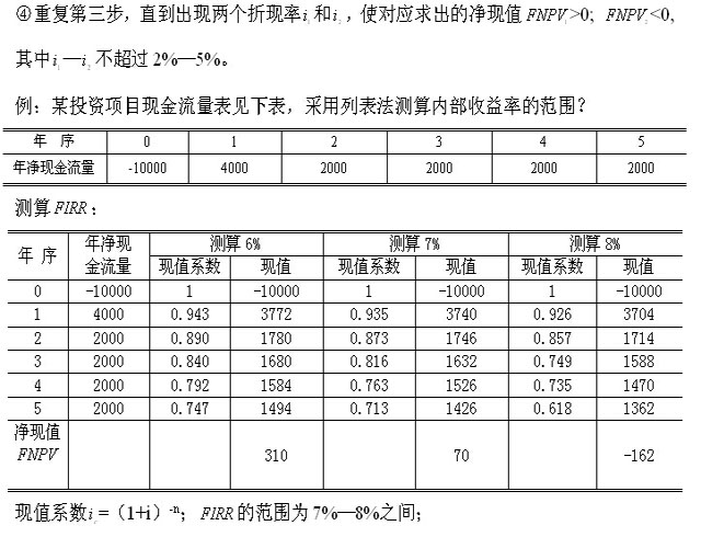 C.内部收益率的计算:实际工作中,采用线性插值法来求得内部收益率,计算步骤: