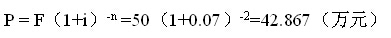 例:某企业两年后拟从银行取出50万元,假定年利率为8%,现应存多少?