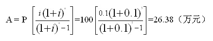 例:现投资100万元,预期利率为10%,坟年回收,每年可回收多少?