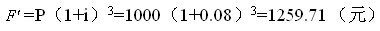 1)单利:F= P(1+i.n)=1000(1+0.08×3)=1240(元)