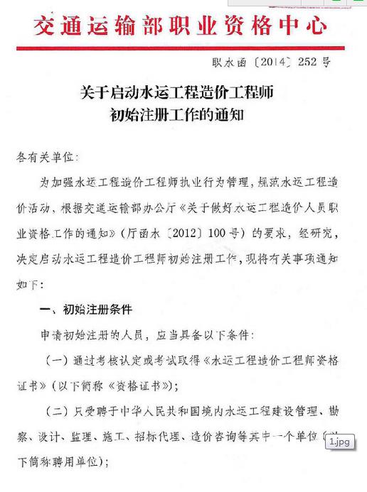广西水运工程造价工程师初始注册工作通知
