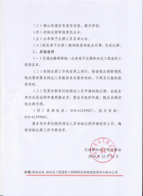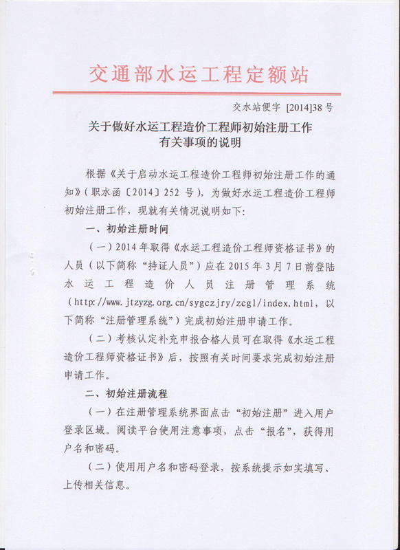 关于做好水运工程造价工程师初始注册工作有关事项的说明