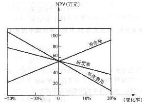 设各因素变化均按±10%、±20%变动,可得计算结果如表9.5.4,并可绘制敏感性分析图如图9.5.8所示。