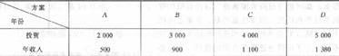同理,可得出C方案与B方案,D方案与C方案的差额净现值如下: