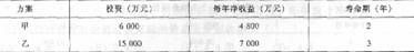 例9.4.11有甲、乙两个寿命期不等互斥投资项目可供选择,有关数据见表9.4.6: