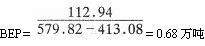 例9.5.3某拟建生产企业设计年产3万吨化工原料,预计生产成本1 352.18万元,其中固定成本112.94万元,单位可变成本413.08元,单位产品售价为579.82元/吨,求项目投产后盈亏平衡点。