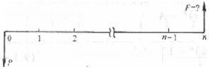 图9.1.3所示为现值向终值的等值变换。即已知P,i,n求F
