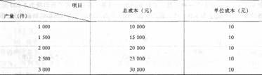 例9.5.2假设某企业只生产一种产品,每单位产品的变动成本为10元,则产量在一定范围内变动时对成本的影响如表9.5.2所示。