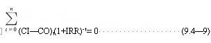 例如图9.4.4所示的现金流量的内部收益率可由下式求得:
