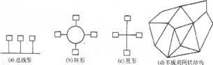 如图7.2.2所示,局域网的基本拓扑结构分为总线形、环形和星形三种(图(a)、图(b)和图(c))。广域网大多数采用不规则的网状结构(图(d))。