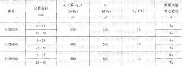 注:(1)牌号HRB为英文Hot Ro11edRibbed Steel Bar首位字母,后面的数字为屈服强度值。