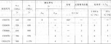 注:(1)牌号CRB为Cold Rolling Ribbed Steel WireS and BarS的首位英文字母,后面的数字为抗拉强度值。