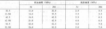 表10.3.3 普通硅酸盐水泥各龄期的强度要求(GB 175―1999)