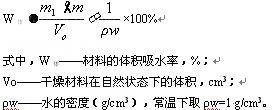 如按体积计算吸水率,是指吸入水的体积占干燥材料自然状态下体积的百分率。计算式
