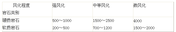 注:①对于微风化的硬质岩石,其承载力如取用大于4000kPa时,应由试验确定;