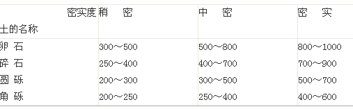注:①表中数值适用于骨架颗粒空隙全部由中砂、粗砂或硬塑、坚硬状态的粘性土或稍湿的粉土所充填;