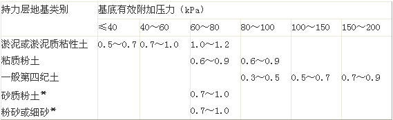 箱基的容许沉降量和容许整体倾斜值,应根据建筑物的使用要求及其对相邻建筑物可能造成的影响,按地区经验和规范规定值确定。最终沉降量的允许值可按规范中高耸结构项目采用,考虑到采用箱基的高层建筑总高度一般小于100m,故对高压缩性土地区宜控制在小于350mm,对中、低压缩性土则不宜超过200mm。对于横向整体倾斜的计算值 ,在非地震区宜符合下式要求: