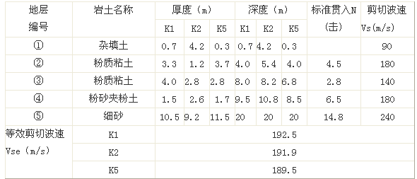 根据《建筑工程抗震设防分类标准》(GB50223―2004),拟建物属丙类建筑物,建筑场地属可进行建设的一般场地。根据邻近场地已有测试资料,场地覆盖层厚度为25米,属于3~50米范围。按照《建筑抗震设计规范》(GB50011-2001)估算深度取20米,根据等效剪切波速估算(见表8),该场地土类型为中软场地土。依据《建筑抗震设计规范》GB50011-2001表4.1.6,该场地类别为II类。