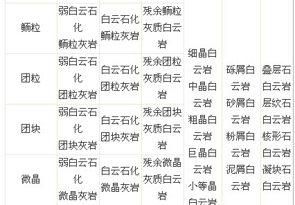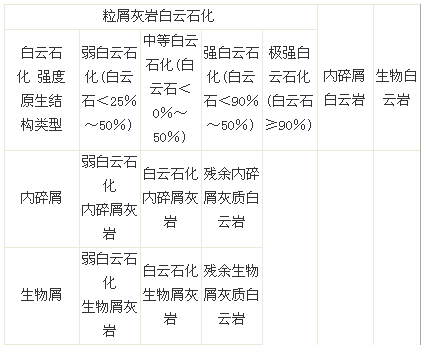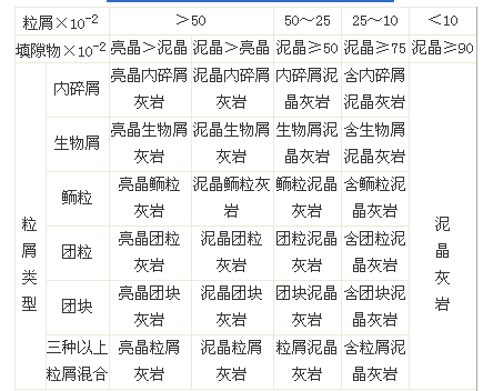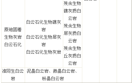 按成分将碳酸盐岩划分为石灰岩和白云岩及其过渡类型,此