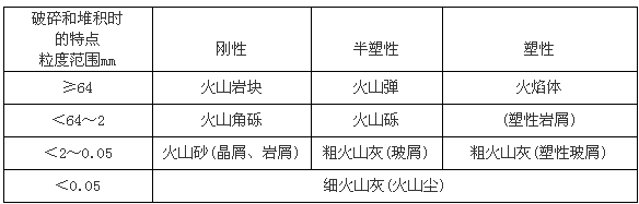 1. 火山碎屑类型与粒级划分(下表)。