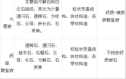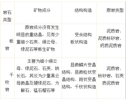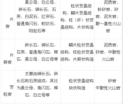 表4-1 常见区域变质岩的岩石类型及特征