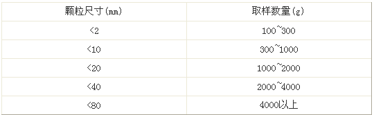 7.1.3 筛析法的取样数量,应符合表7.1.3的规定: