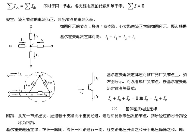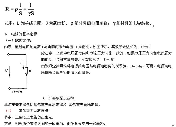 二、 本讲的重点与难点是:电路的基本定律中的欧姆定律、基尔霍夫定律,以及计算复杂电路的戴维南定理、支路电流法、节点电位法