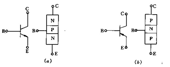 晶体管是由两个距离很近的PN结构成,必须有三层半导体材料相隔,故此有PNP型和NPN型两大类。晶体管内部有三个区:发射区(e区)、基区(b区)、集电区(c区),两个PN结:发射区和基区之间的发射结和基区与集电区之间的集电结,还有分别从三个区引出的三个电极:发射极、基极和集电极。