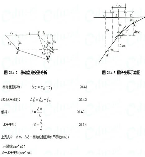 设A、B为主断面上未移动的两点,A/、B/为移动终止后的相应位置, 为A、B两点间的距离,由图20.4-2可知: