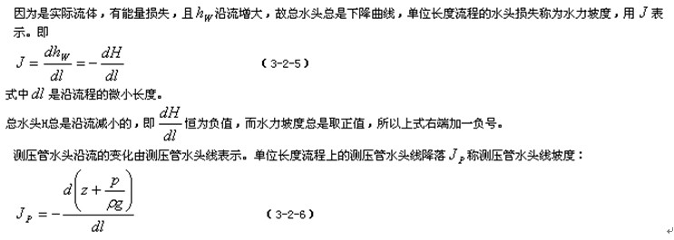 因为测压管水头即为单位重量流体所具有的势能,而势能和动能是可以互相转化的,所以测压管水头线坡度可正可负,也可为零。在均匀流中,流速沿流程不变,即动能不变,这时测压管水头线与总水头线平行,表明由于损失,使势能减小,损失多少,势能就减小多少。