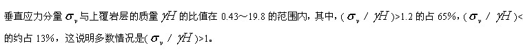 岩体天然应力的垂直分量,一般认为等于该点的上覆岩层的质量 。但从国内实测资料(工程岩体分级标准(GB50216―94)条文说明)看,