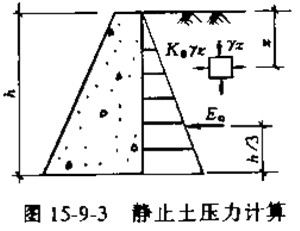 由式(15-9-1)可知,静止土压力沿挡土结构竖向为三角形分布,如图15-9-3所示。