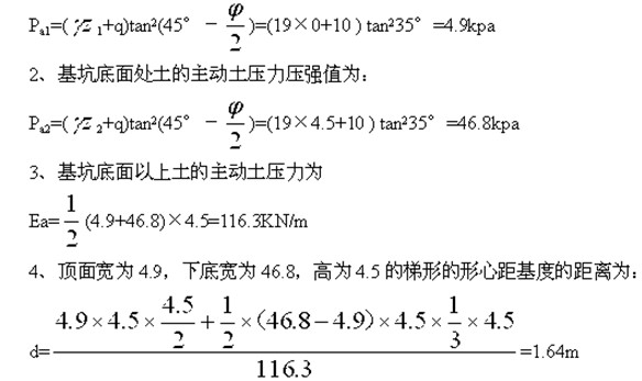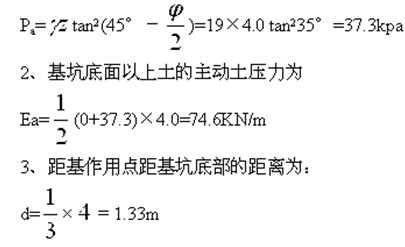 【解析】1、基坑底面处土的主动土压力压强值为: