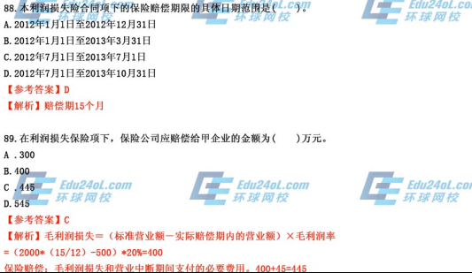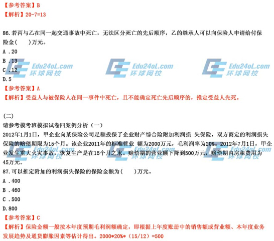 摘要 环球网校2014年中级保险真题答案解析,预祝大家都能顺利通过考试