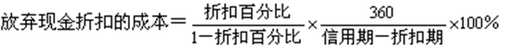 如果购货方放弃现金折扣,就可能承担较大的机会成本,其计算公式为: