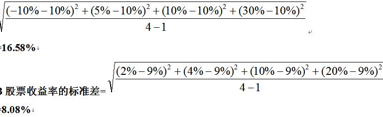 (1)计算A、B两只股票的期望收益率、标准差以及标准离差率