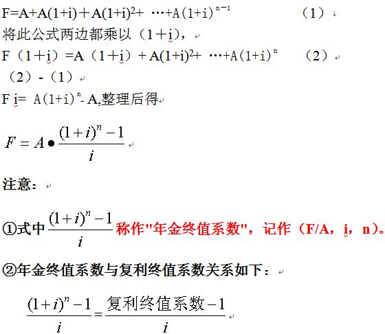 式中(1+i)n简称"复利终值系数",记作(F/P,i,n)。