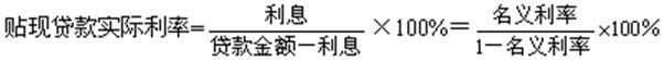 贴现法是银行向企业发放贷款时,先从本金中扣除利息部分,而到期时借款企业再偿还全部本金的一种计息方法。贴现法的实际贷款利率公式为: