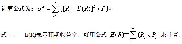 1.收益率的方差( ):收益率的方差用来表示资产收益率的各种可能值与其期望值之间的偏离程度。