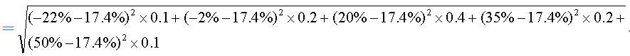 E(RA)=(-22%)×0.1+(-2%)×0.2+20%×0.4+35%×0.2+50%×0.1=17.4%
