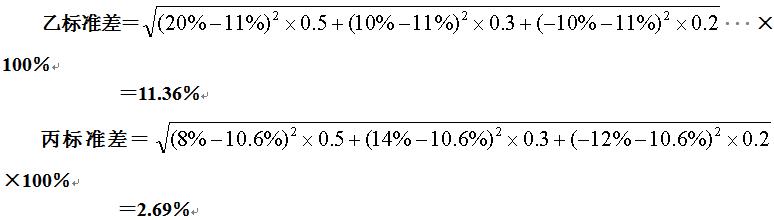 丙的预期收益率=0.5×8%+0.3×14%+0.2×12%=10.6%