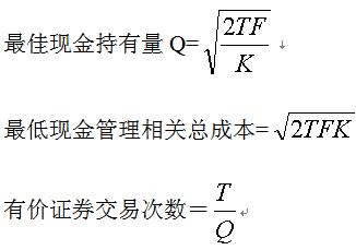 2、存货模式??只考虑现金的机会成本与固定转换成本,而不予考虑管理费用和短缺成本