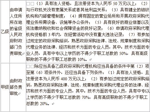 (1)甲级政府采购代理机构资格由财政部负责审批。