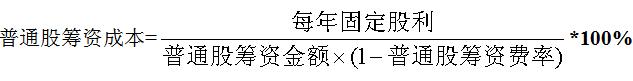 ②在股利增长率固定的情况下,采用股利折现模型计算普通股成本的公式为: