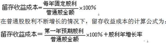留存收益成本的计算需分普通股股利固定和普通股股利逐年固定增长两种情况: